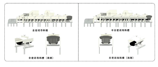 惯性沉降控尘装置主要由缓冲控尘装置、扩容缓阻装置、循环释压装置、阻尼沉降装置、密封防喷装置等组成,根据各产尘点情况进行组合配置。