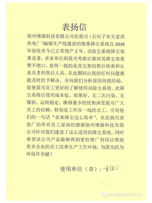 努力的意义,就是,以后的日子里,放眼望去,全部都是自己喜欢的人和事!说干就干,12个除尘点一一观察,蹲在地上,仔细研究尘源位置,哪个点产尘多,一个除尘点至少要观察1-2天,功夫不负有心人,在连续一个月的观察中,位保全及他的团队为该项目制定了可行的工业除尘方案,除尘效果相当之好,大大出乎业主的意料,一封表扬信说明了一切……